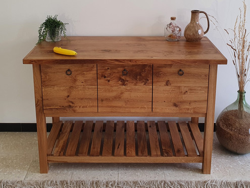 en chêne local (Marne 51), métal et résine.